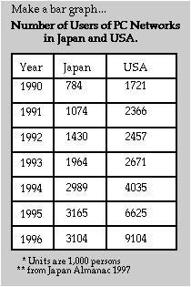 3. Then write a paragraph comparing the number of PC network users in Japan and the USA.